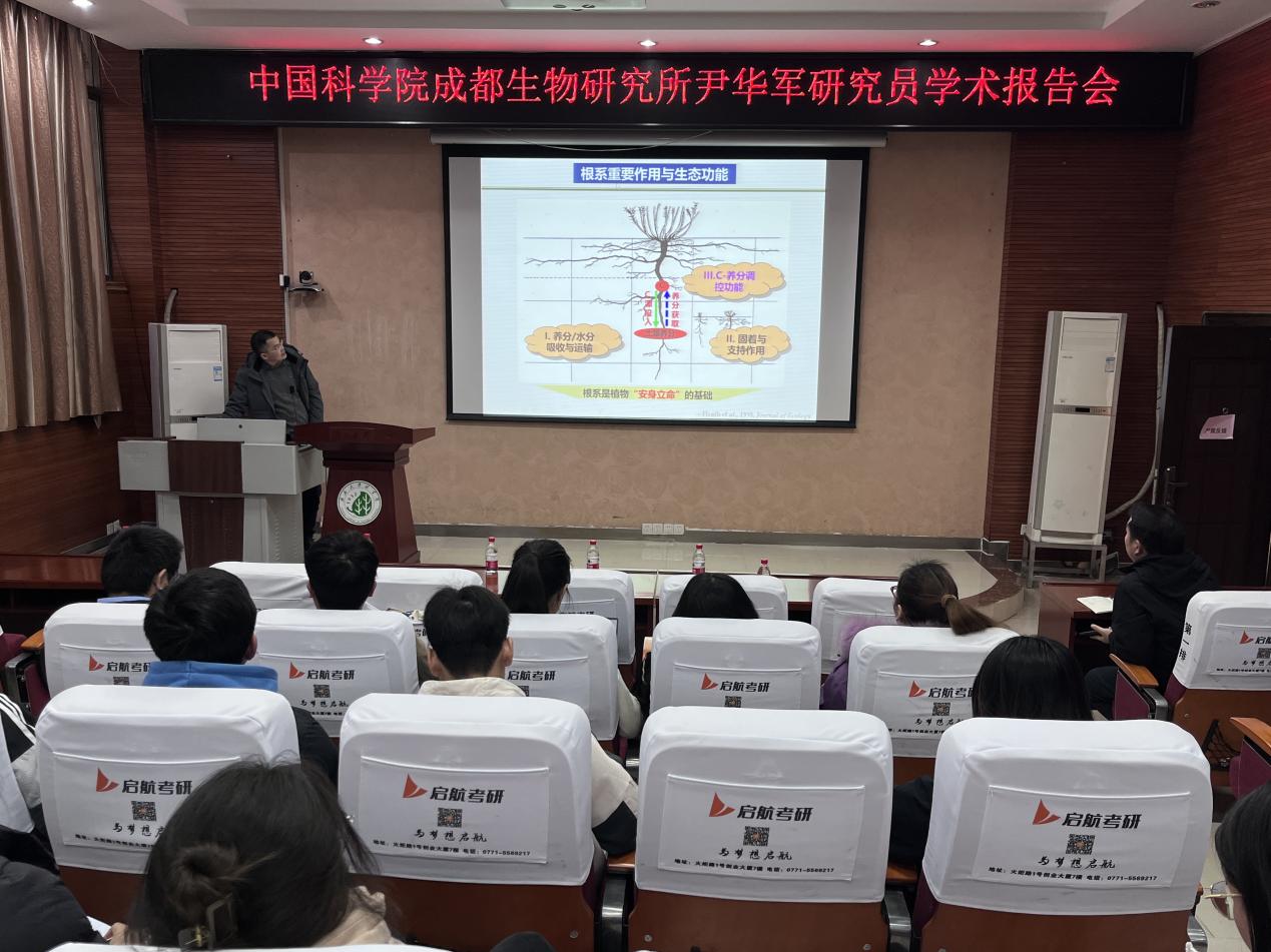 2023年12月24日至25日,中国科学院成都生物研究所尹华军研究员受邀到best365官网开展学术交流活动,并作了题为“高寒森林根际生态过程研究”的学术报告。本次学术报告会由best365官网副院长尤业明老师主持,学院相关教师、研究生和本科生共计100余人聆听了学术报告。